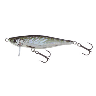 Alakja, mérete, színezete telitalálat. Mintha a küszről fénymásolták volna. A terelőlemeze viszont szinte 90 fokban lefelé áll, ez csak azért felelős, hogy a műcsali megkapja a remegős kóválygó mozgását, magától a terelőlemeztől sem süllyedni, sem emelkedni nem fog a wobbler.